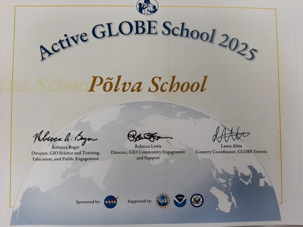 2025. aasta mõõtmistulemuste eest sai Põlva Kool järjekordse Aktiivse GLOBE Kooli sertifikaadi. GLOBE (Global Learning and Observations to Benefit the