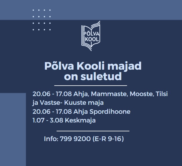 🔒Põlva Kooli majad on suvepuhkusel suletud