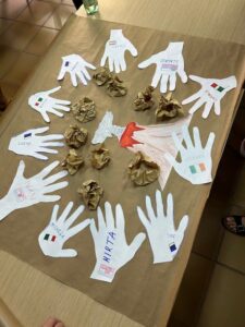Viiendal päeval olime tagasi keeltekoolis, kus vaatasime tagasi kogu nädalale ja teemadele, mida käsitlesime, andsime tagasisidet läbitud koolituse kohta. Kuna tegemist oli siiski koolitusega, mis käsitles läbi kogemuste õppimist ja keskendus multiintelligentsuse teooriale, siis olid ka selle päeva tegevused selles võtmes.Koos teiste õppegruppidega lõime “vulkaanikoori”, kus esitasime nädala jooksul õpitud mõisteid, liigutusi ja helisid kasutades muusikapala. Iga grupp valis materjalid ja viisi, mis annaks edasi nädala jooksul omandatud teadmised, kogemused ja mõtted – kes tegi plakati, kes laulis, kes lõi AI-ga pildi, kes meisterdas skulptuuri. Töötasime rühmades ning mõtlesime tagasi kogu nädalale. Arutasime kursuse tugevusi ja saime anda tagasisidet. Päeva lõpetasime tunnistuste jagamise, fotode tegemise ja väikese tähistamisega.