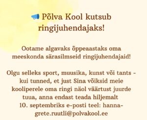 Põlva Kooli kõikide õppekohtade huviringidesse registreerimine toimub